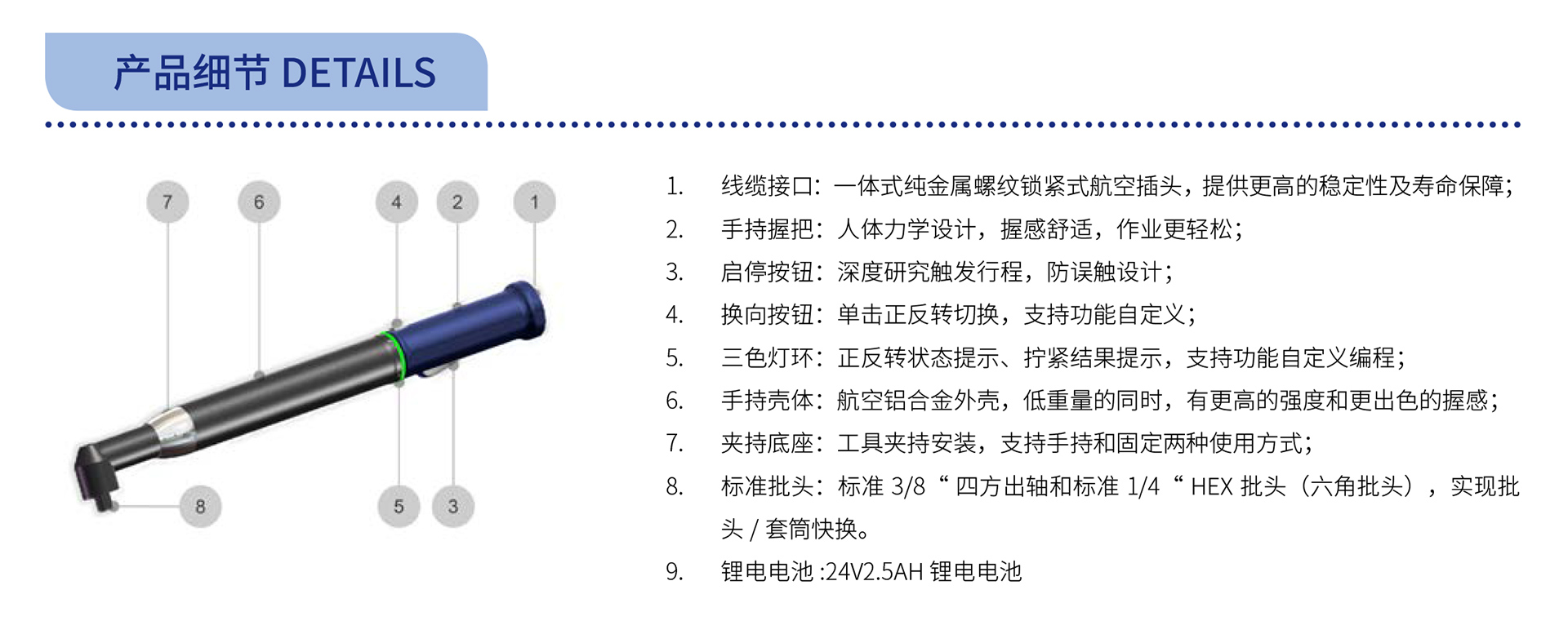 - 内置力传感器:实时检测真实的力输出,实现力的闭环控制 (而非电流式工具的非闭环估算力输出) ;